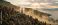 • Jesus teaching the Beatitudes to a large crowd of followers atop a hill overlooking a lake. Sermon on the mount, Gospel of Matthew. Banner with copy space