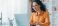 Rafa koralowa - A woman sits at a desk in her home office using a laptop. She looks focused and is dressed in a... #1942862169
