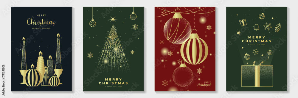 • Elegant Christmas card vector pack with gold ornaments, Christmas trees and holiday greetings, suitable for greeting cards, invitations, posters and luxury packaging