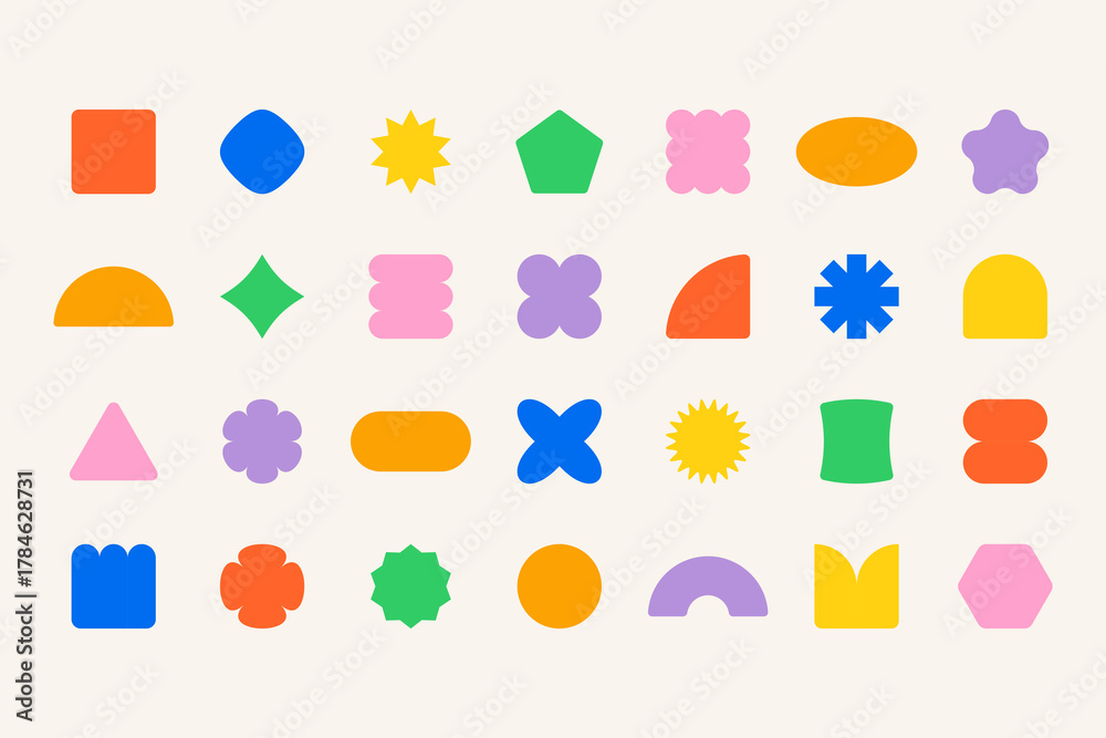 Niebo - Abstract geometric shapes. Groovy stickers 70s 80s pop art style, retro funky geometry figures,... #1784628731