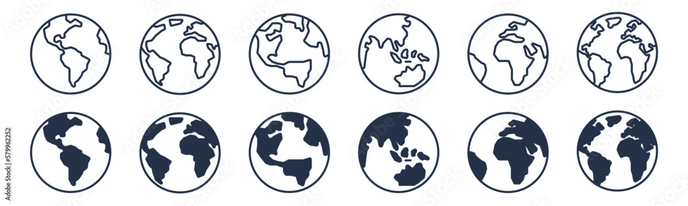 • Minimal planet earth icons. Editable stroke. Vector graphic illustration. For website design, logo, app, template, ui, etc.
