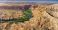 • Impressive panorama of Charyn Canyon in Kazakhstan, featuring a meandering river and unique rock formations under a clear blue sky