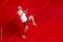 Przestrzeń - Playful Santa look alike dances in bright red studio wearing white tank top plaid shorts and... #1818692676