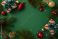 • Festive Christmas and New Year scene with wrapped gifts, ornaments, pine branches, and a rich green backdrop ideal for holiday cards, promotions, and seasonal banners