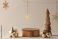 Przestrzeń - Empty wooden stand for products with carved Christmas tree and golden star. #1844321928