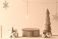 • Empty wooden stand for products with carved Christmas tree and golden star.