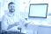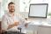 Przestrzeń - Young businessman working with clipboard and blank computer at table in office #1847196159