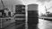 Przestrzeń - USA and Russia oil barrels sit side by side at a busy shipping port. Cargo ships and cranes... #1909610755