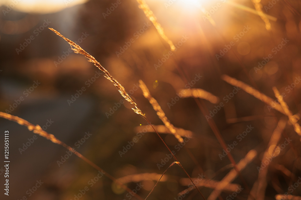 Makro - macro di piante di campo illuminate dalla luce arancione del sole al tramonto #1215051113
