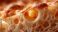 • Detailaufnahme einer porösen Brotstruktur mit goldbrauner Kruste und luftigen Löchern im Inneren