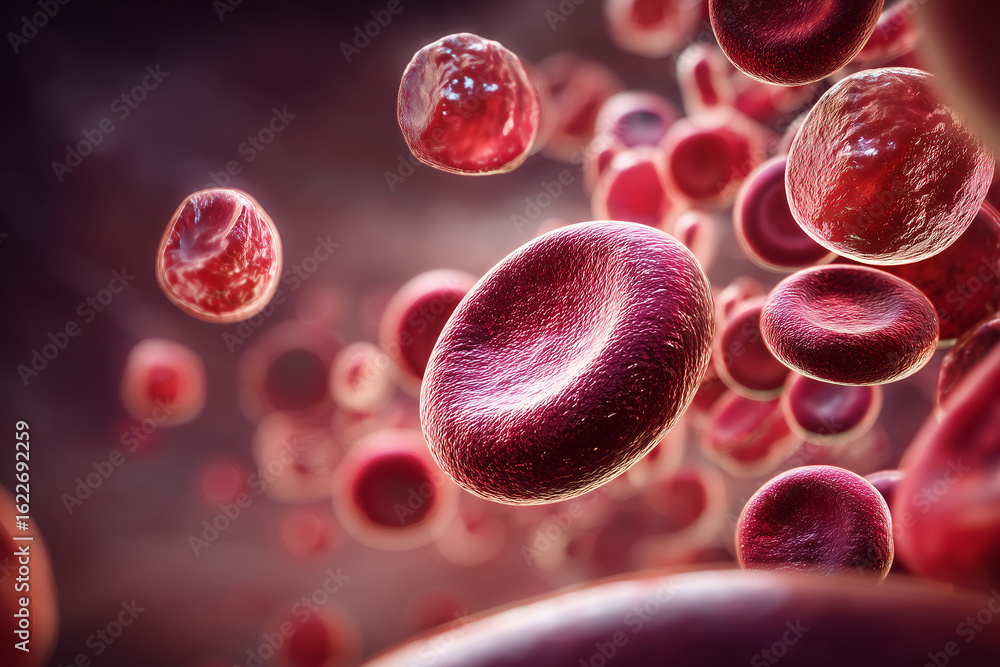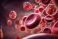 Makro - Czerwone krwinki widziane przez specjalistyczne urządzenie medyczne, ukazujące ich kształt i... #1622692259