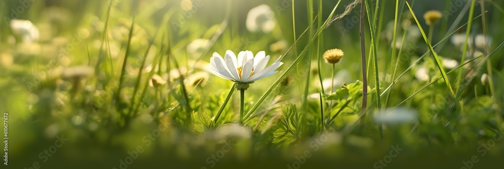 Makro - Makro einer Blume auf einer Blumenwiese (Generative AI) #610677672