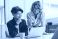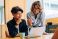 • Two colleagues sharing ideas while working on a laptop in modern office