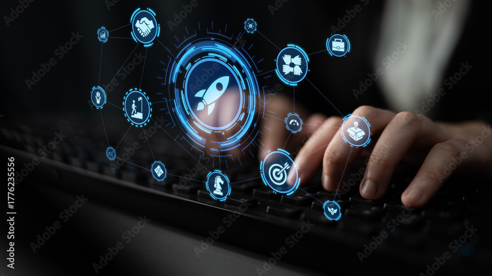Kształty - Startup launch and business growth concept, rocket symbolism, entrepreneurship, startup... #1776235556