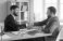Kształty - Confident male lawyer in suit working in office shaking hand with a man client sitting at the... #1778204501