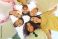 • Friends together, group of young adults standing closely together in circle, looking downwards and smiling joyful, celebrating friendship and connection, sunny outdoor fun, pleasure or satisfaction