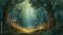 • Watercolor forest scene with magical trees and mushrooms, enchanting atmosphere for creative art display