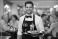 Kształty - Young man waiter smiling and holding tray with drinks and food in restaurant serving clients.... #1889496831