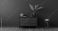 • 3D render of elegant living room interior with commode and decor against dark green wall mock up background