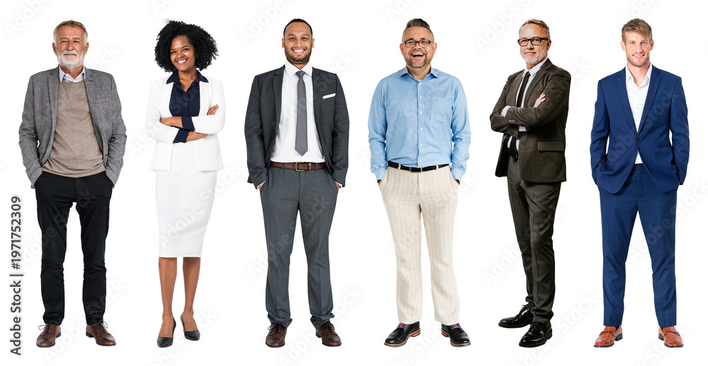 Retro - PNG Diverse professionals standing confidently on transparent background #1971752309