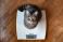 Koty - Funny cat standing on the scale. Photo of a cat's paws standing on a measuring scale. Cute tabby... #1079062588