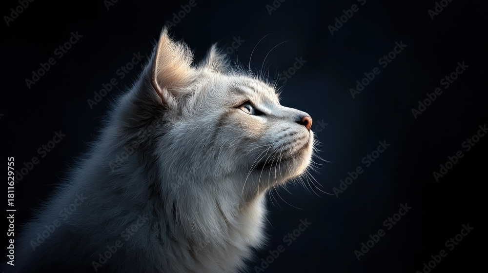Koty - White cat profile, sunlit, dark background #1811629755
