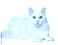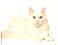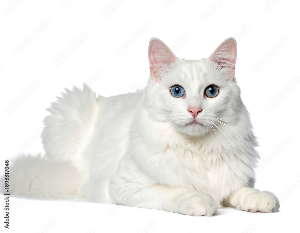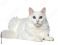 Koty - A white cat with blue eyes lies down on a plain surface #1893317048