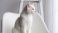 Koty - White cat sitting on chair looking away, isolated on clean background #1903941850