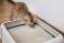 Koty - Domestic cat sniffs bulk litter in a plastic box. #487331488