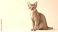 Koty - A Chausie cat sitting gracefully on a light solid color background, showcasing its sleek fur and... #977729147