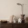 • Interior design of aesthetic living room interior with copy space, wooden sideboard, vase with dried flowers, books, modern sculpture, beige wall with stucco and personal accessories.