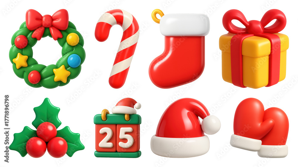 • PNG Festive holiday icons in 3D, element set on transparent background
