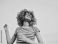 Zwierzęta - Young person with curly hair smiles under a clear blue sky, wearing a red and white striped shirt... #1772348405