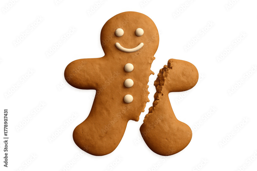 Zwierzęta - Gingerbread man cookie broken into two pieces, showing a clear separation with a transparent... #1778907431