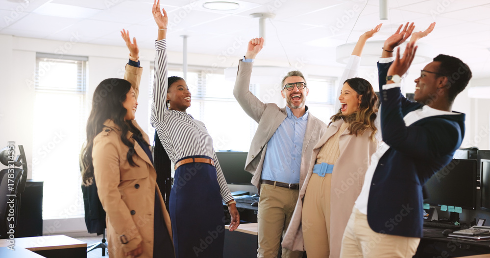 Zwierzęta - Corporate, people and hand stack in office for motivation, teamwork and celebration of success.... #1783214351