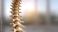 • Close up detailed view of a human vertebral column model showcasing bone structure and intervertebral discs in soft lighting