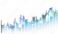 • Transparent stock market chart with candlestick bars and rising trend line. Digital finance background showing trading, investment growth, profit analysis and economic data.