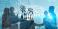 • Business professionals shaking hands in a modern corporate environment with digital connections and a crowd of people in the background Quark.