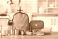 Zwierzęta - Orange emergency backpack with necessities on table in kitchen #1935305093