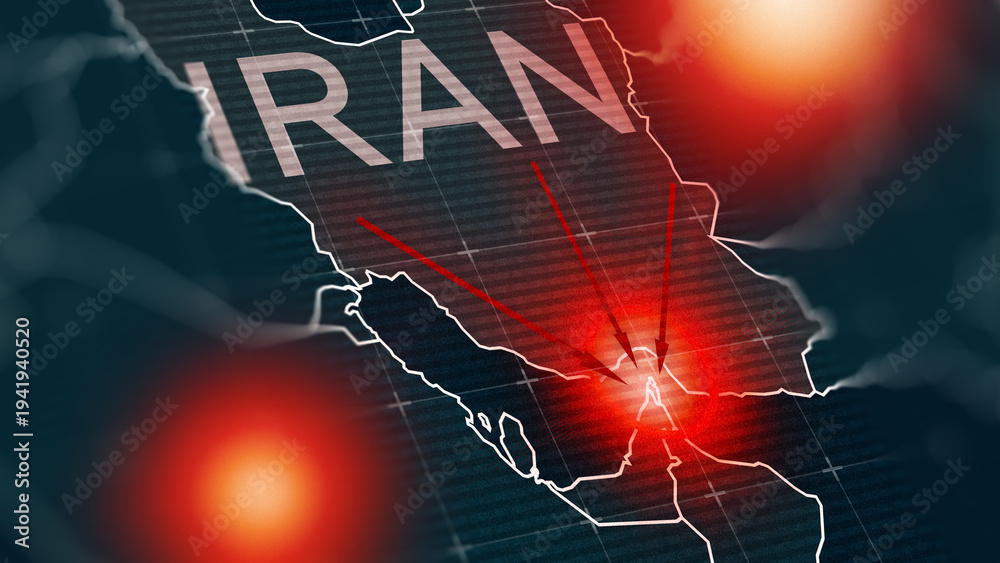 Zwierzęta - Conflict map highlighting tensions between Iran and the USA in the Middle East region #1941940520