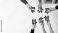 • Diverse hands come together to join puzzle pieces depicting essential marketing concepts, highlighting teamwork in strategizing for business success and innovation. Amity