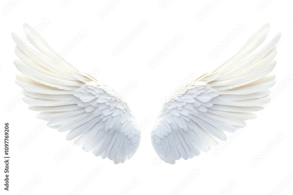 Anioł - Divine Beauty. Realistic angel wing isolated on a white background #1097769206