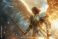• A majestic angel with golden armor wielding a sword amidst dramatic skies.