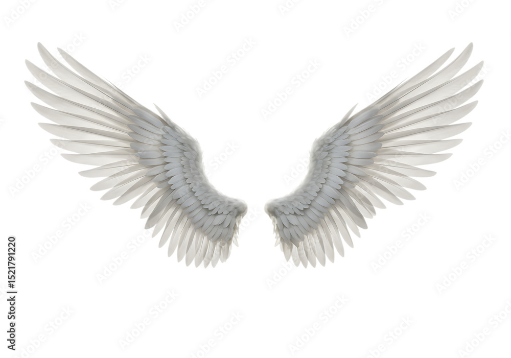 • Pair of elegant white angel wings spread wide Isolated on transparent background representing freedom and grace
