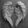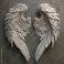 • Intricate angel wings sculpture displayed on a textured wall in a softly lit room