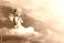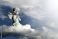 • Guardian angel kneeling and praying. Angel guardian on the cloud