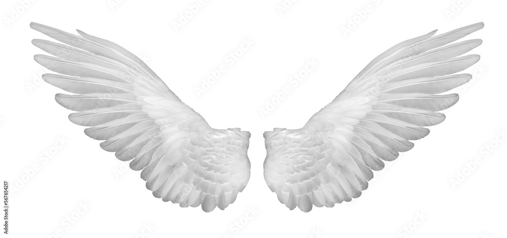 Anioł - Realistic angel wings. White wing isolated. png transparency #567654217