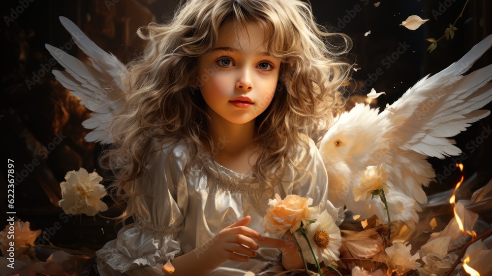 Anioł - portrait fun little girl angel with wings,angel with wings, ai generative #622367897