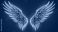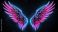 • abstract neon angel wings illuminated by pink and blue lights on UV geometric background - cyberspace futuristic wallpaper
