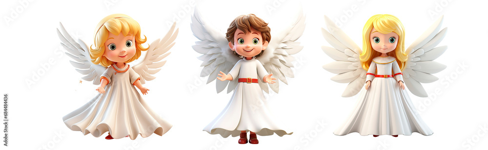 Anioł - set of Christmas angel png 3d Isolated on transparent background. Christmas element for greeting... #684484436